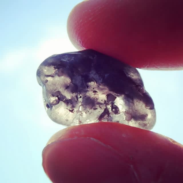 天然ガラス、という事で、中身は7~8割がガラス成分(二酸化ケイ素SiO2)ですが、実はほんの少しだけ水分が入ってます。マグマから生まれたのに水分が入っている、というのも、中々ヘンテコな話です。