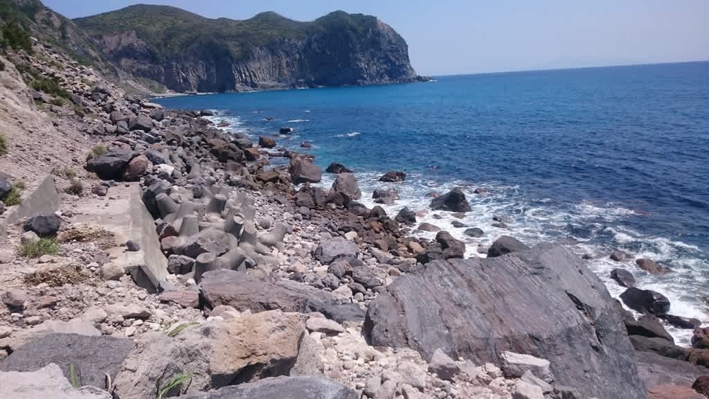 砂糠崎は、島の東側、三浦漁港のある多幸湾の北側の岬を覆っている巨大な黒曜石層です。