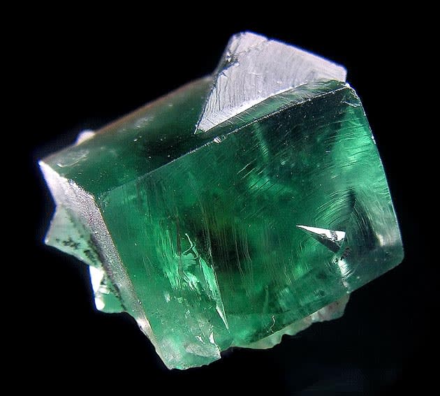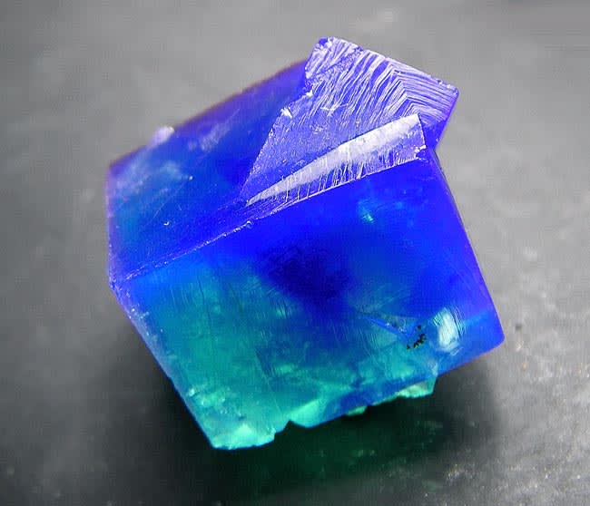 蛍光鉱物として有名な蛍石(フローライト)これは元が緑で青く発色するもの