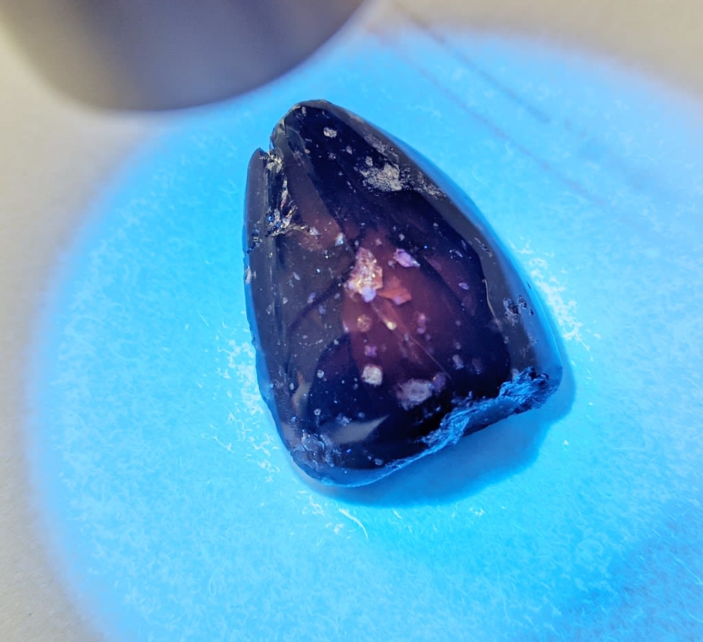 これまで黒曜石は、その蛍光鉱物の仲間とはされていませんでした。少なくとも私のこれまでの見識では、蛍光する黒曜石は見たことも聞いたこともありません。(外国語記事はあまり読めてないので、もしかしたら海外では既に知られているのかもしれませんが・・・)